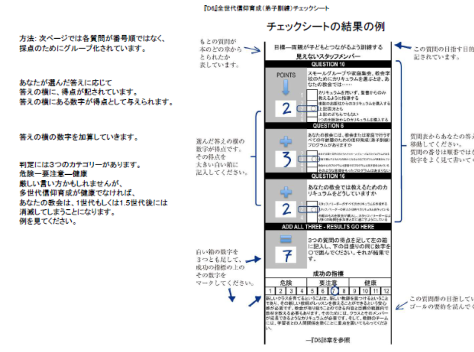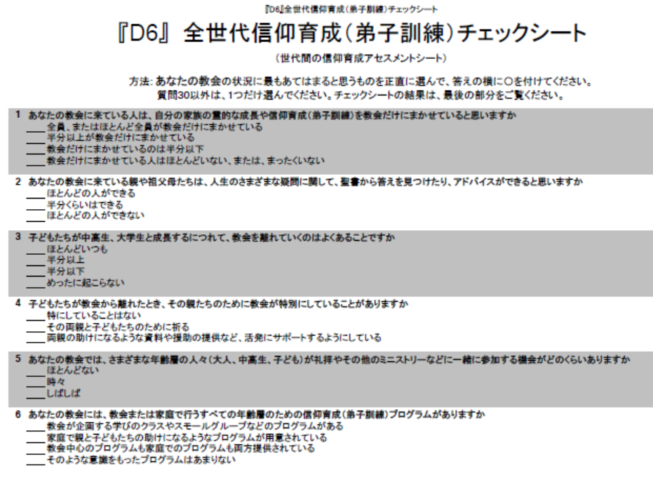 D6の働きは、申命記6章の原則に基づいています。「教会」と「家庭」がつながり、教会と家族が互いに強め合うこと、また教会と家族が成長していくことを目ざしています。